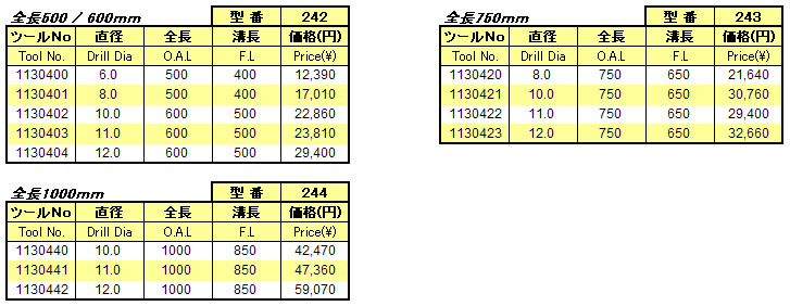 ■厚い心厚設計によりドリル剛性を高め、直進性にすぐれています。